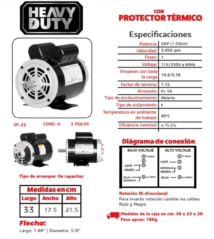 MOTOR COMPRESOR DE 2HP 2POLOS MONOFASICO